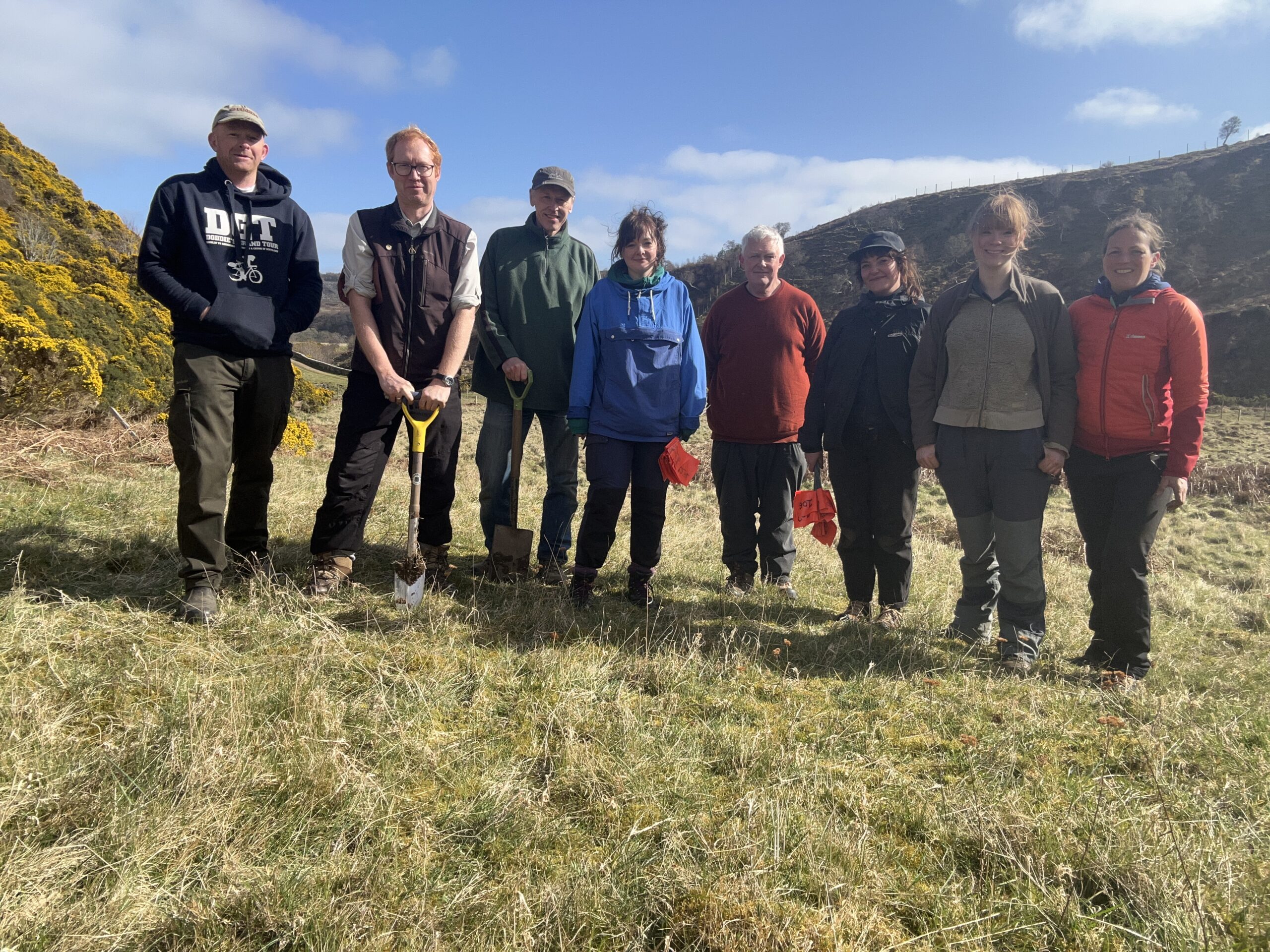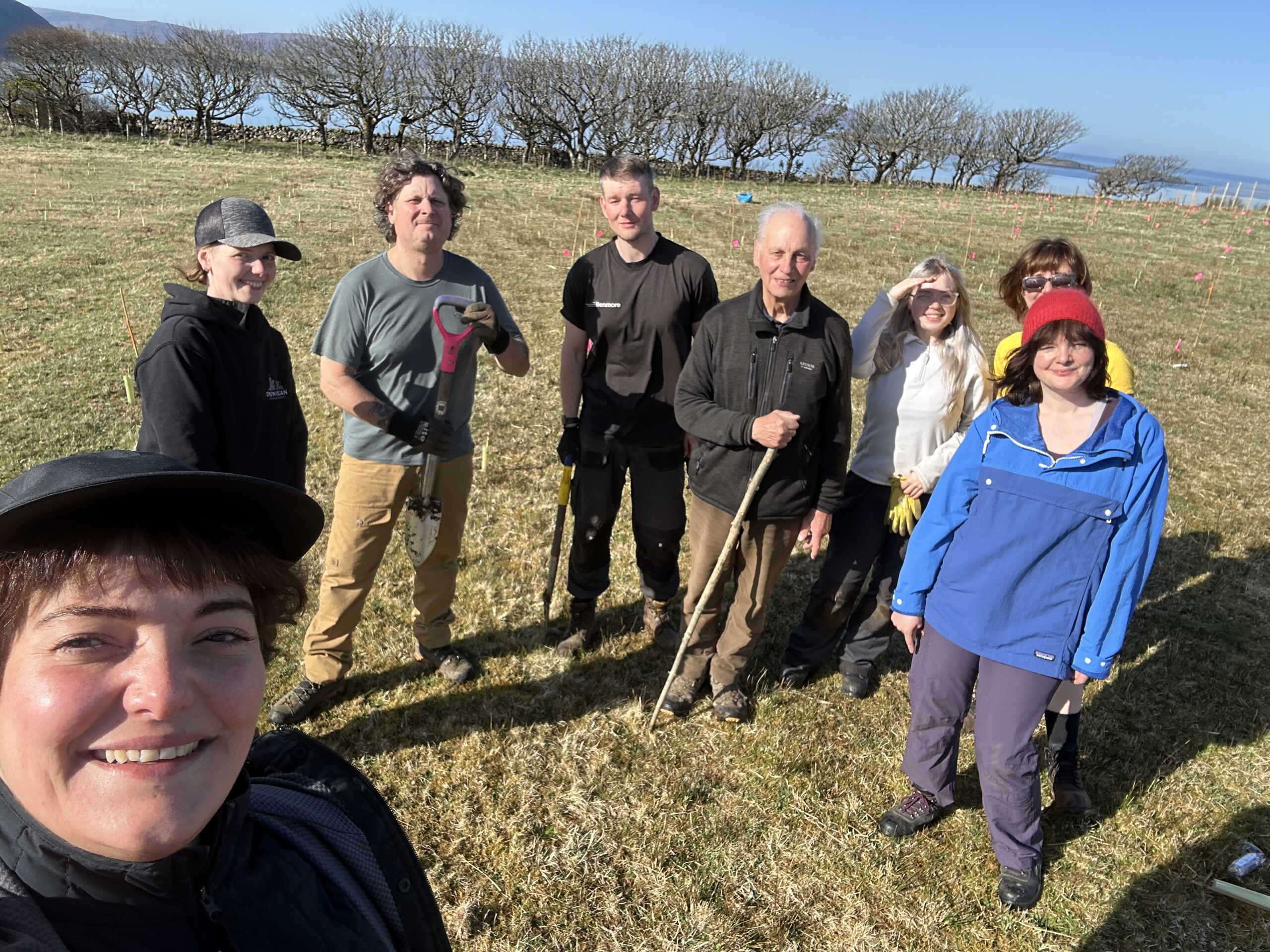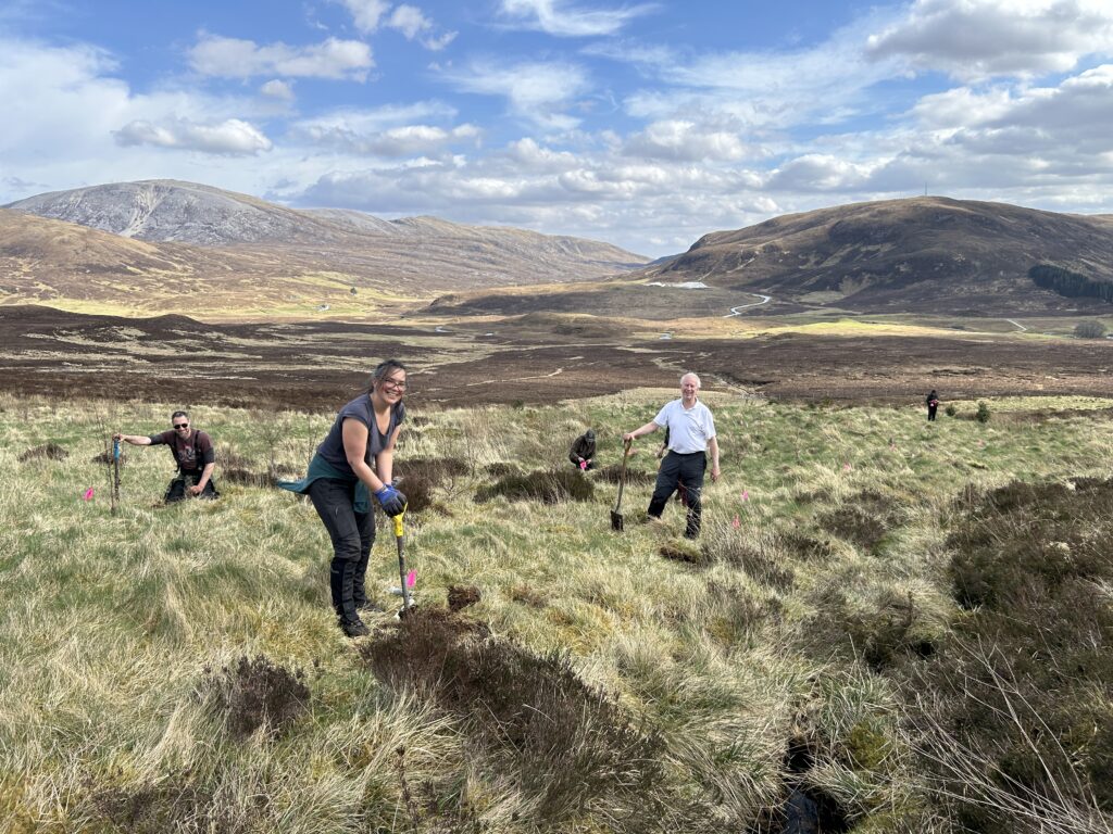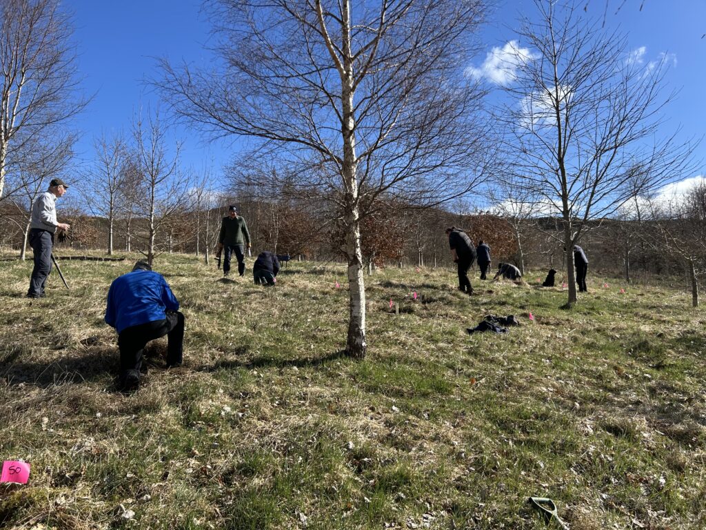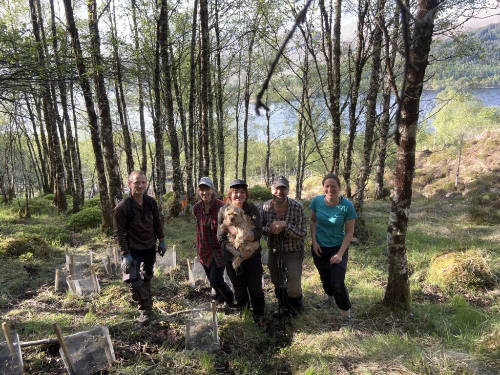 In forestry terms the numbers of trees will seem tiny, but for conservation planting that relies on volunteers and involves time-consuming, careful planting and logging of data on each tree this task has been a lot of work. The Scottish Plant Recovery team first checks that each plant is free of pest and disease, creates records for each sapling, prepares and packs the plants ready for transit to site, a massive task. Volunteer planters have all been lined up and the trips to 15 sites planned and organised. Then it’s time to roll up our sleeves and start digging holes to begin the plantings. The weather is not always kind, and it’s still early in the year, so a day out planting in the field can be exhausting work and something that needs repeated day after day to get through the list of sites all over Scotland.