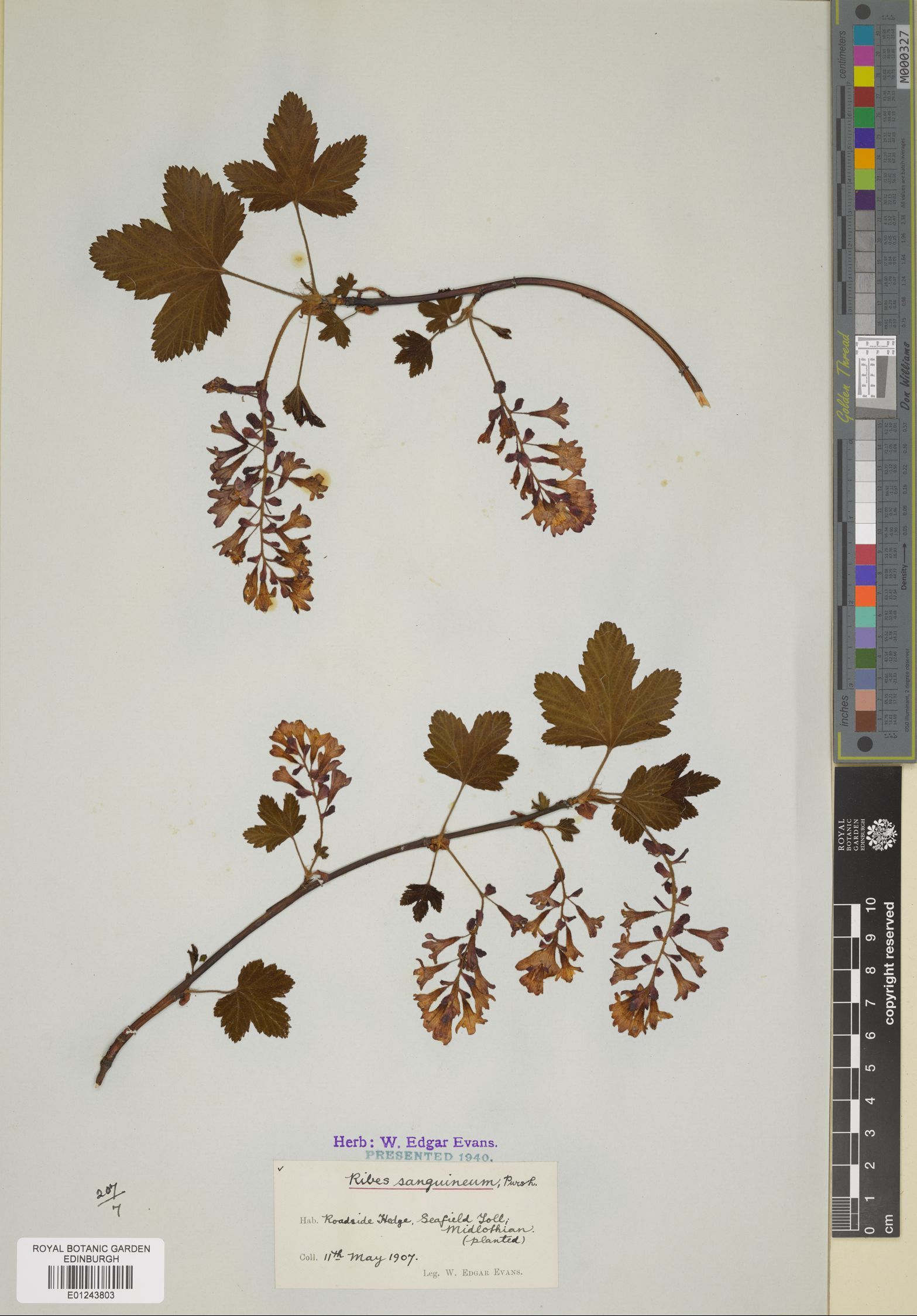 Ribes sanguineum L. (known colloquially as flowering currant) is native to the West of North America and was first introduced to the UK in 1826 by the Scottish botanist and plant collector David Douglas (after whom the Douglas fir, Pseudotsuga menziesii, was named). Douglas was funded by the Royal Horticultural Society to find and collect plants in North America for cultivation in British gardens. In a journal recording one of his collecting trips to the north-western coast of North America, Douglas gives a description of the native Ribes sanguineum, on 12th April 1825: